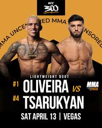 Despite a dangerous choke attempt in the closing seconds of Round 3, Tsarukyan was able to survive until the final bell to barely outpoint former champion Charles Oliveira via split decision on Saturday in a featured lightweight fight at UFC 300 inside T-Mobile Arena in Las Vegas. Charles Olivera is Brazilian fighter and he has a record of 34 wins to 10 losses primarily fighting in the jiu-jitsu fighting style. He is known for his anaconda chokehold and grappling his opponents. Arman has a record of 22 wins to 3 loses. He is an Armenian fighter and is number one in the lightweight division.