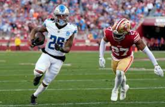 Going into the 2nd quarter with the 49ers down they knew they had to get some points on the board and that’s what they did. About a minute into the quarter, McCaffrey scored a 1 yarder putting 6 points on the board for the team. That didn’t stop the Lions though, they ended up putting 10 more on the scoreboard with a 21-yard field goal completed by their kicker M.Badgley and a 15-yard rushing touchdown by J.Gibbs to bring the score 24-7 going into the half.